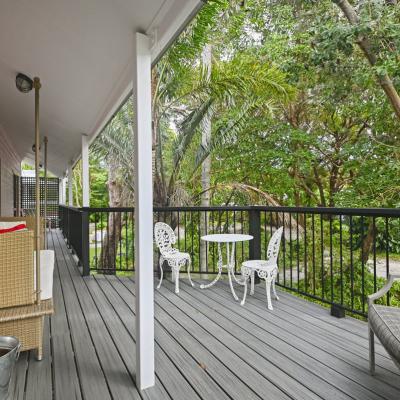 - The laundry is separate downstairs with an outdoor shower.
