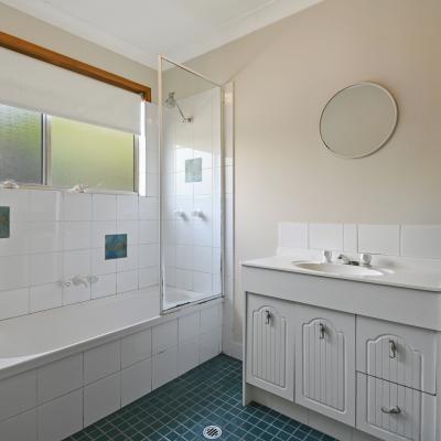 - Bathroom: Shower over bath, vanity