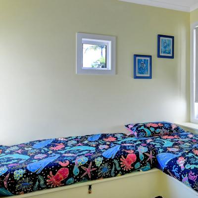 This villa captures a nice breeze in the afternoon and guests can use the facilities, pools and food venues at Tangalooma Island Resort.